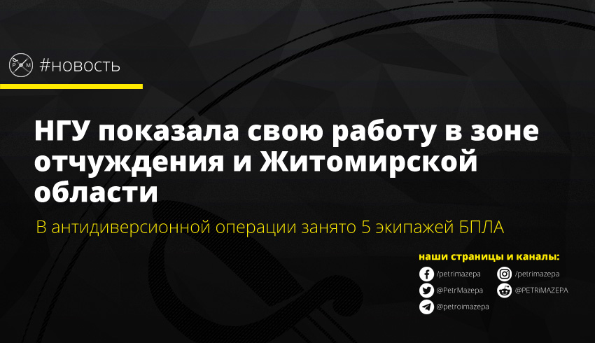 В Нацгвардии показали видео про выполнение антидиверсионной операции в Чернобыльской зоне отчуждения и Житомирской области. В круглосуточном дежурстве задействовано пять экипажей БПЛА.