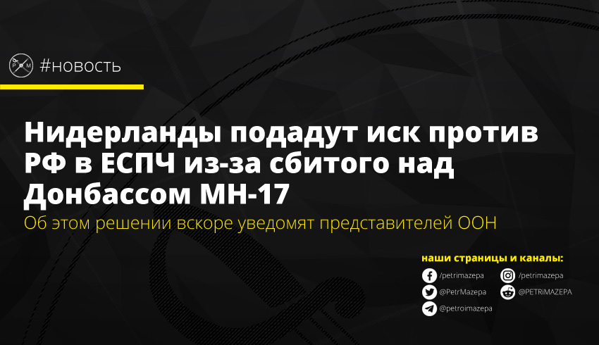 Нидерланды подадут иск против России в Европейский суд по правам человека по делу о сбитом над Донбассом самолетом рейса МН-17. О решении подать иск в ЕСПЧ уведомят представителей ООН.