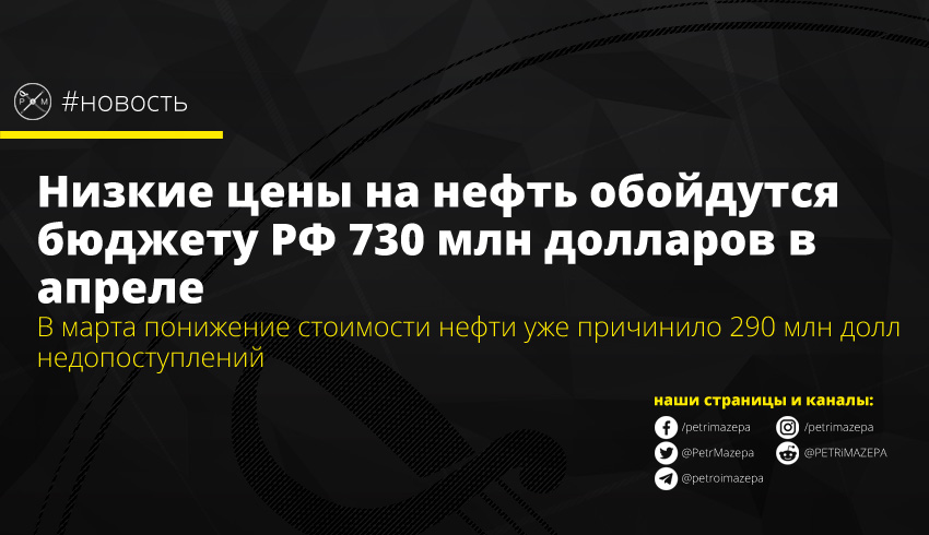 Низкие цены на нефть обойдутся бюджету РФ 730 млн долларов в апреле