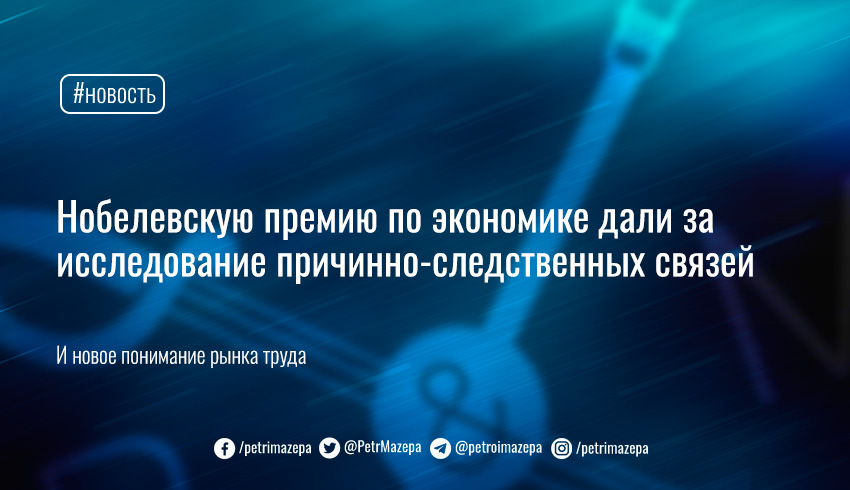 Нобелевскую премию по экономике в этому году получили Дэвид Кард, Джошуа Ангрист и Гидо Имбенс за новое понимание рынка труда и выводы о причинах и следствиях вмешательства в ход вещей естественных причин.