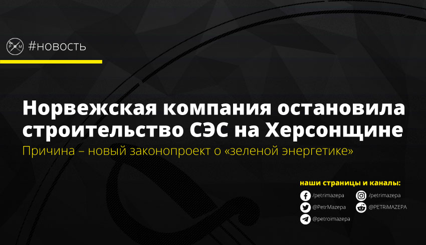 Норвежская компания остановила строительство СЭС на Херсонщине