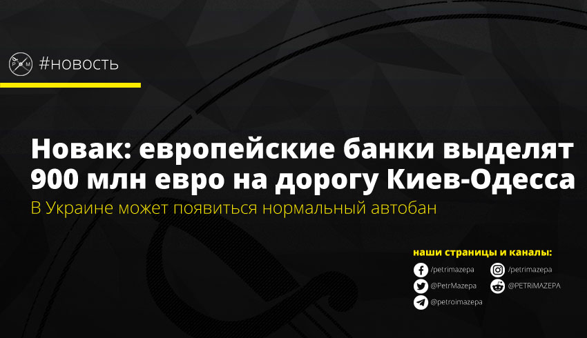 «Нам удалось завершить переговоры с европейскими банками - EИБ и ЕБРР - Украина получает следующие 900 миллионов евро на капитальный ремонт дороги Киев - Одесса и поднятие этой дороги до категории автобана. Со следующего строительного сезона они должны начать ремонт, то есть, можно будет сказать: “Наконец будет хоть куда-то нормальный автобан”. На капитальный ремонт этой дороги необходимо 2-3 года», - рассказал Новак в интервью изданию «Громадське».