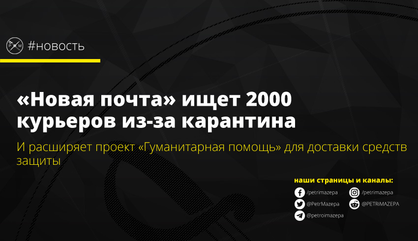 «Новая почта» в период карантина работает в усиленном режиме. Чтобы доставлять посылки украинцам, компания ищет 2000 новых курьеров. Кроме того, расширяется социальный проект «Гуманитарная почта».