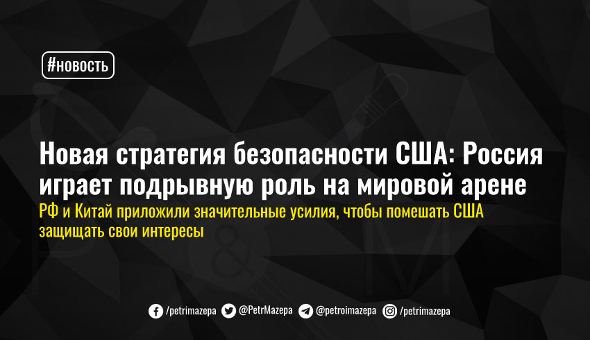 Новая администрация США представила промежуточную стратегию по нацбезопасности. В ней роль РФ в мире называется подрывной, отмечается возрастающая агрессивность Китая и намерение США поддерживать боеготовность своих вооруженных сил «перед лицом угроз», связанных с РФ и Китаем.