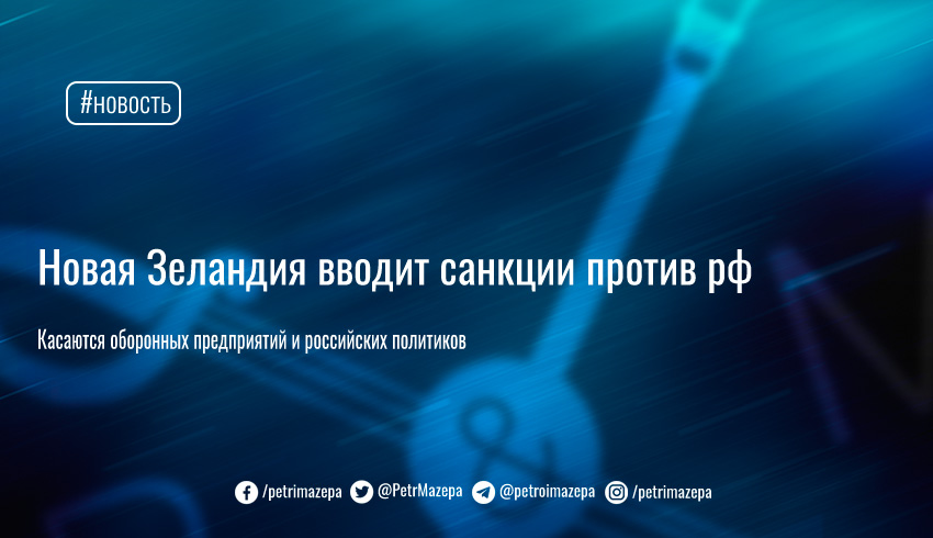 Новая Зеландия ввела дополнительные санкции против российских политиков и оборонных учреждений, «поддерживающих действия путина в Украине». Правительство Новой Зеландии также усилило санкции в отношении более 400 человек, которым ранее запретили въезд в страну.