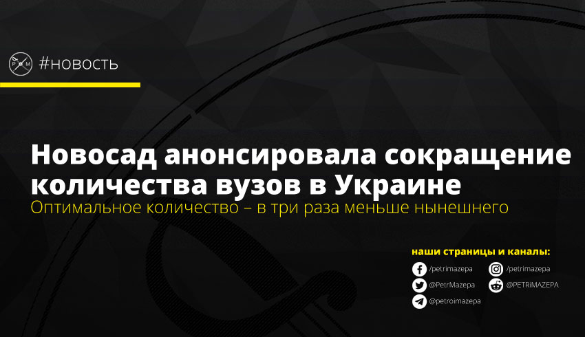Глава Министерства образования и науки Анна Новосад анонсировала сокращение числа вузов в Украине. По ее словам, оптимальным можно считать число в 80 университетов, что в три раза меньше, чем сейчас. Уже готовятся крупные кейсы по оптимизации университетов, а в скором времени она обещает и решение Кабмина про объединение четырех университетов.