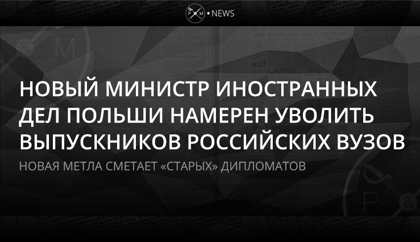 Новый министр иностранных дел Польши Яцек Чапутович заявил, что собирается уволить из ведомства всех дипломатов, окончивших в свое время российские вузы.