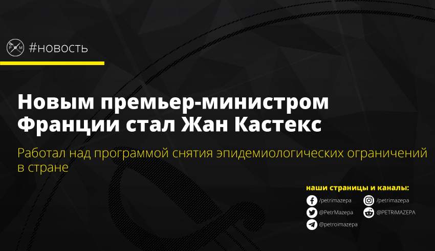 Президент Франции Эммануэль Макрон назначил новым премьер-министром Жана Кастекса. Кастекс занимался координацией вывода страны из режима изоляции, введенной в связи с коронавирусом.