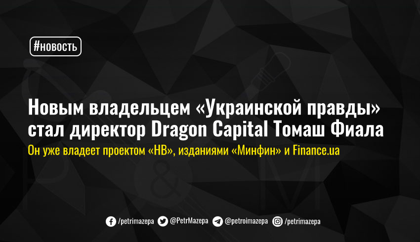 Новым владельцем интернет-издания «Украинская правда» стал генеральный директор Dragon Capital Томаш Фиала. Редактор-основатель издания Алена Притула и новый владелец договорились, что редакционная политика издания и подходы к работе останутся без изменений.