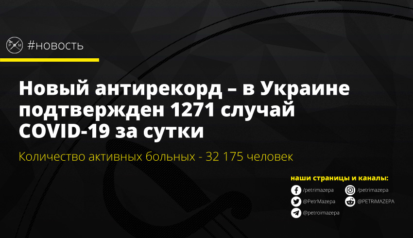 Новый антирекорд – в Украине подтвержден 1271 случай COVID-19 за сутки