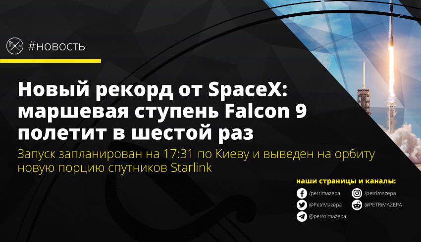 Новый рекорд от SpaceX: маршевая ступень Falcon 9 полетит в шестой раз
