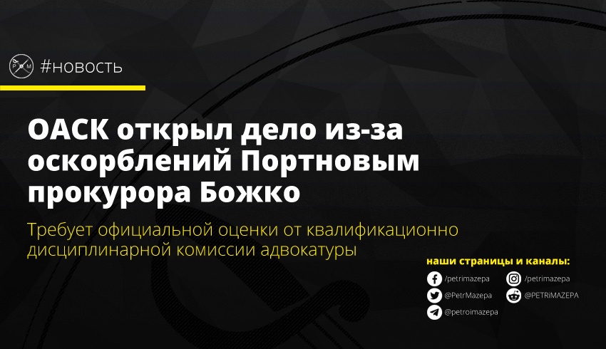 «Портнов систематически угрожал и давил на прокурора в своем деле Божко путем направления извращенных сообщений. Более того, он прямо и публично признал, что это он писал и подтвердил все написанное в своем телеграм-канале с 92 тыс. подписчиков», - напомнил суть дела адвокат Роман Маселко в Facebook.