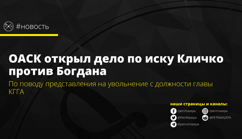 Окружной админсуд Киева (ОАСК) открыл дело по иску городского головы Киева Виталия Кличко к главе Офиса президента Андрею Богдану. Истец просит признать противоправными действия Богдана, связанные с его обращением относительно увольнения Кличко с должности главы Киевской городской госадминистрации (КГГА).