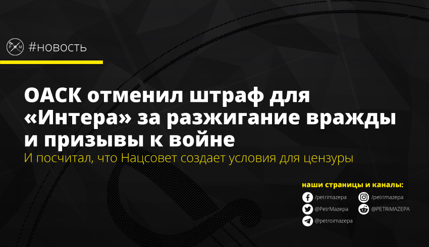 ОАСК отменил штраф для «Интера» за разжигание вражды и призывы к войне