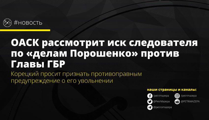 Окружной админсуд Киева открыл производство в деле по иску главы следственной группы по «делам Порошенко» Олега Корецкого против Главы ГБР Александра Соколова. Дело будет рассматриваться по правилам упрощенного искового производства без вызова сторон.