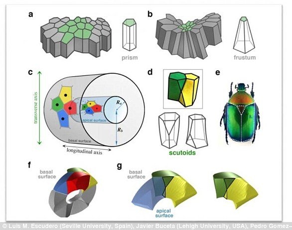 Поскольку данная форма клеток ранее никогда не встречалась, поэтому ей присудили собственное название. Скутоид - объемный многогранник, который имеет плоское основание и вершину, соединенных между собой шестью гранями с одной стороны и только пятью с противоположной. Для этого у скутоида есть характерный треугольный выступ, который и делает его форму принципиально отличной от «мятого» цилиндра, сообщается в исследовании ученых, которое опубликовано в Nature Communications.
