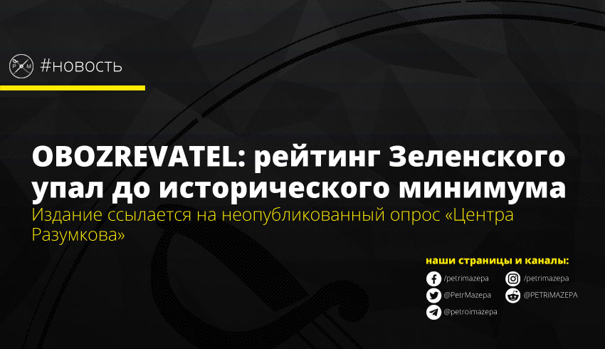 OBOZREVATEL: рейтинг Зеленского упал до исторического минимума