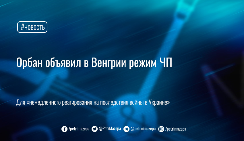 Премьер-министр Венгрии Виктор Орбан объявил чрезвычайное положение в стране из-за войны в Украине.