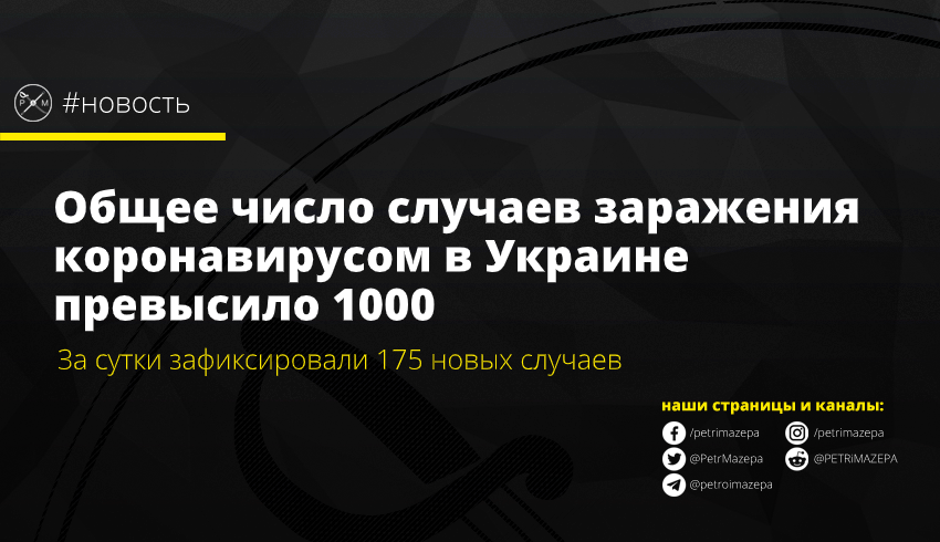 Общее число случаев заражения коронавирусом в Украине превысило 1000