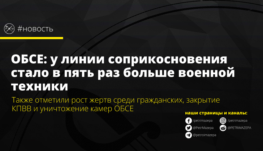Главный наблюдатель СММ ОБСЕ Яшар Халит Чевик на заседании Постоянного совета ОБСЕ сообщил, что на Донбассе в районе линии соприкосновения зафиксирован пятикратный рост количества военной техники. И много случаев размещения такой техники около жилых домов.