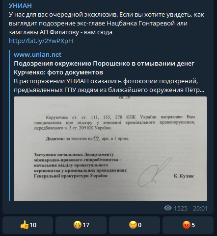 Несмотря на уже выданные опровержения того, что в деле Курченко не было объявлено подозрение Гонтаревой, Филатову или Ложкину, ряд украинских СМИ продолжают выдавать за реальность индивидуальные поделки прокурора Константина Кулика.