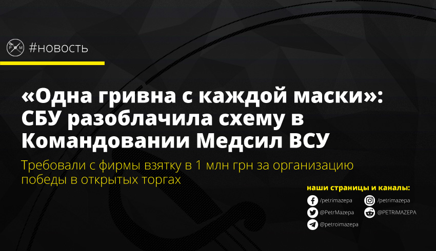 «Одна гривна с каждой маски»: СБУ разоблачила схему в Командовании Медсил ВСУ