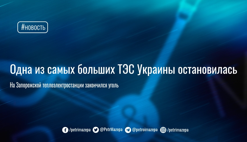 На Запорожской теплоэлектростанции закончился уголь, который невозможно доставить в результате временной оккупации Энергодара россиянами и боевых действий. В связи с этим работа ТЭС остановлена.