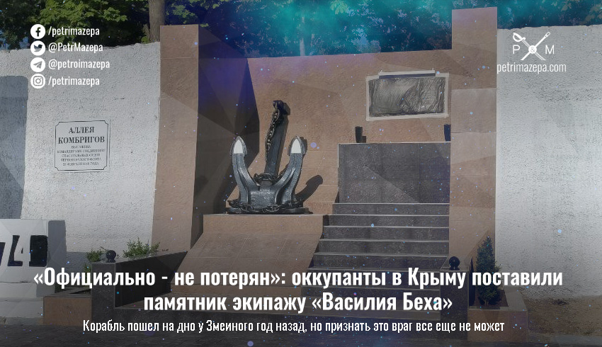 В Севастополе оккупанты поставили памятник экипажу судна «Василий Бех» — несмотря на то, что ВМФ России никогда официально так и не признал уничтожение судна, как и гибель экипажа, а родственникам так и вообще заявили, что «мы их туда не посылали».