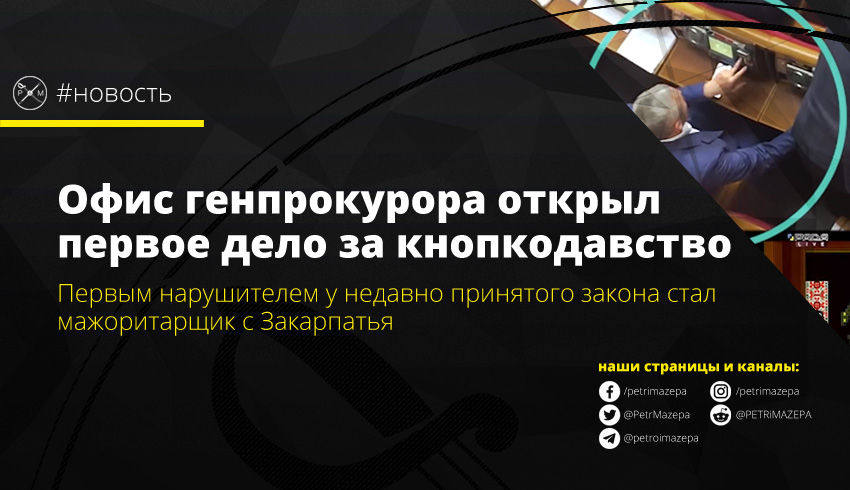 21 февраля в Верховной Раде внефракционный мажоритарщик из Закарпатья Владислав Поляк неоднократно кнопкодавил во время голосования за поправки к проекту закона об обращении земель сельскохозяйственного назначения. И вечером в Офисе генерального прокурора сообщили про открытие дела по факту кнопкодавства.