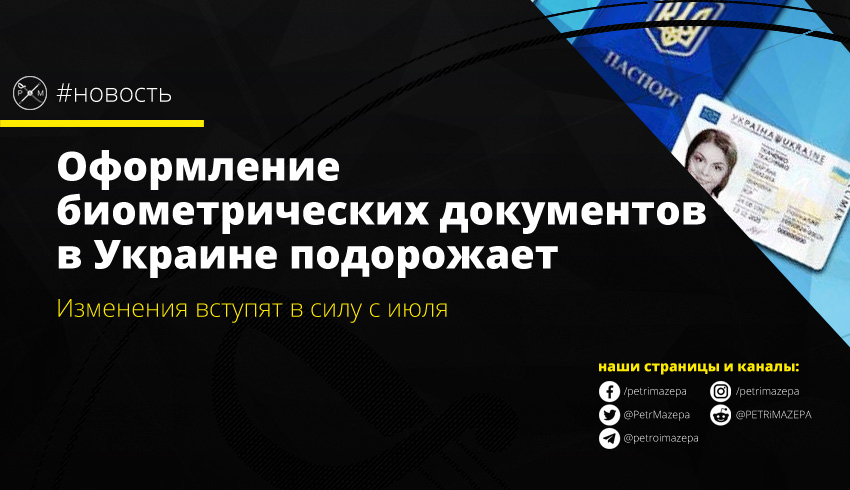 С 1 июля в Украине возрастет стоимость оформления биометрических документов и самих бланков, согласно решению Кабмина от 24 апреля этого года.