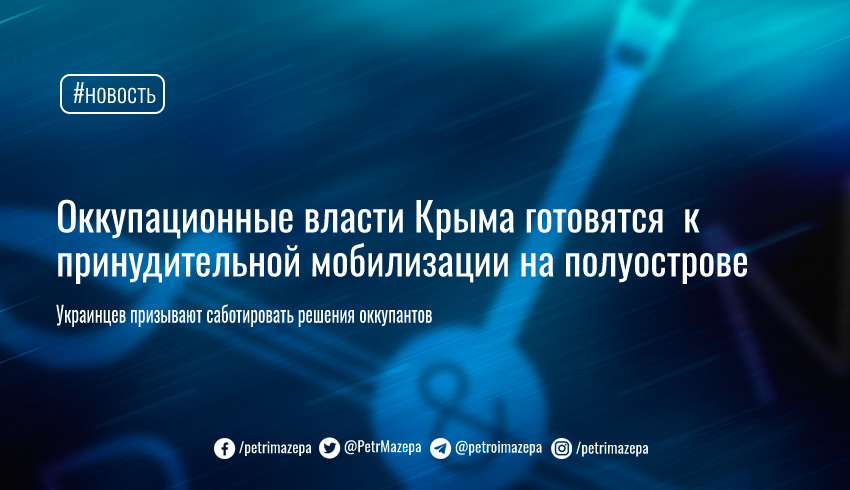 Представительство президента в Автономной республике Крым в Facebook сообщает, что недавно «глава» Крыма приказал создать «призывную комиссию по мобилизации». Также поручено открыть соответствующие комиссии более низкого уровня. Это свидетельствует о подготовке к принудительному призыву. «Граждан Украины в оккупированном Крыму снова планируют заставлять воевать против собственного государства, как это уже происходит с теми, кого оккупанты незаконно призвали на срочную службу», — значится в сообщении.