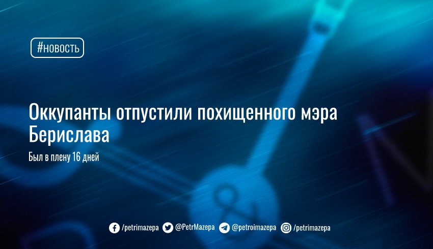 В пресс-центре Бериславского городского совета сообщии, что городской глава освобожден. «Вчера (2 апреля – ред.) около 11 часов городского главу Берислава Александра Шаповалова отпустили из плена. Это были 16 длинных и тяжелых дней для всех», - значится в сообщении.