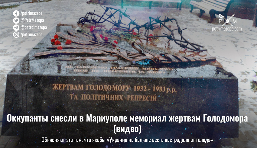 Оккупационные власти снесли в Мариуполе памятник жертвам Голодомора, установленный в городе еще 18 лет назад. В типичном для россиян циничном стиле три спикера оккупантов объяснили тем, что якобы «Украина на предпоследнем месте по количеству пострадавших от голода», что городу «не надо напоминать о плохом», и что это не памятник жертвам голода, а памятник дезинформации.