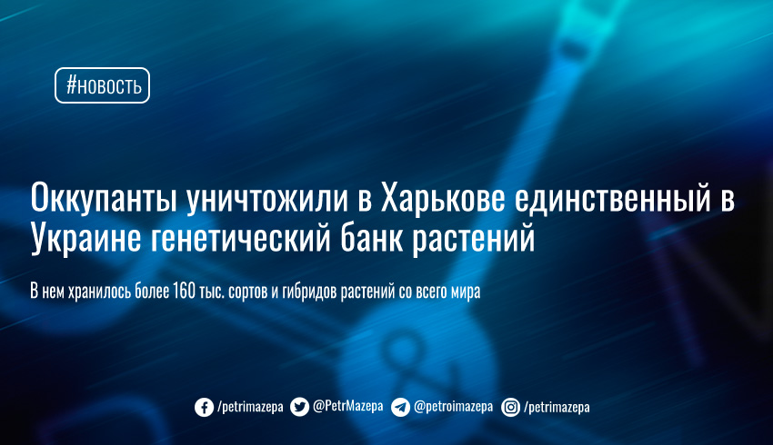 Российские оккупанты уничтожили в Харькове единственный в Украине генетический банк растений, в котором хранилось более 160 тыс. сортов и гибридов растений со всего мира. Банк растений сохранился даже при немецкой оккупации, однако не смог избежать сокрушительных ударов российской армии.