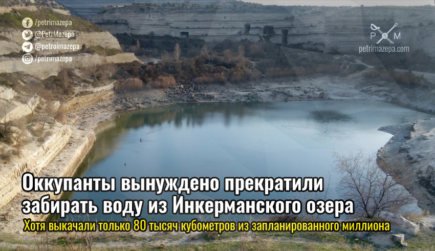 В Инкерманском водозаборе Севастополя истощился запас воды и оккупационные власти Крыма вынужденно прекратили водозабор из озера в бывшем известняковом карьере.
