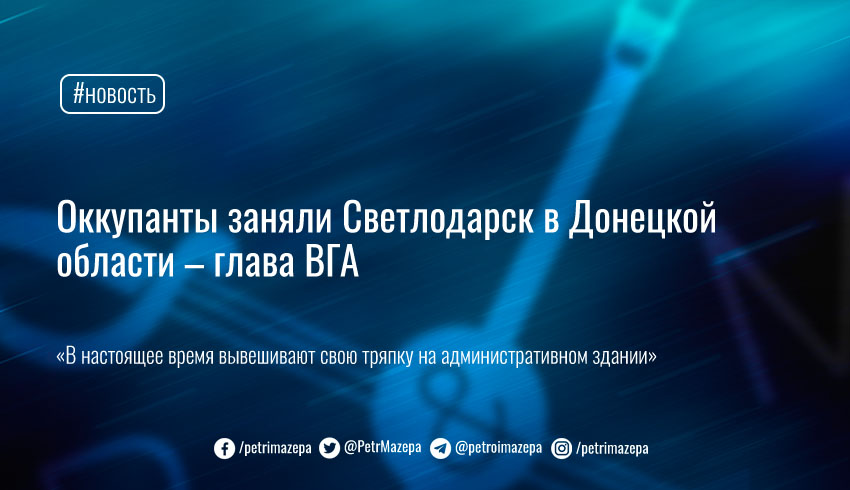 Сегодня утром оккупанты заняли город Светлодарск в Донецкой области. Об этом сообщает «Свободное радио» со ссылкой на информацию от начальника Светлодарской военной администрации Сергея Гошко.