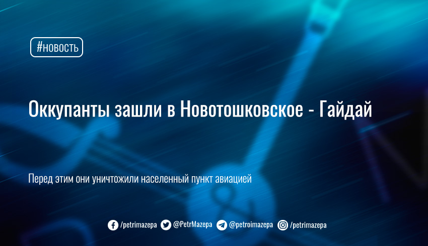 Гайдай напомнил, что Новотошковское, которое враг уничтожил авиаударами, входит в состав Горской ВГА. Сейчас идут активные бои за другие населенные пункты общины.