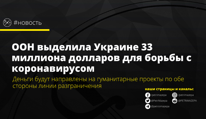 ООН в рамках «Глобального плана гуманитарного реагирования для борьбы с COVID-19» предоставила Украине 33 миллиона долларов.