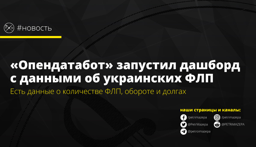 Команда «Опендатабот» запустила дашборд по украинским физлицам-предпринимателям (ФЛП). Здесь есть данные о количестве зарегистрированных и закрытых ФЛП, среднем доходе и общем доходе за год, количестве налогов, которые такие предприниматели платят в бюджет.
