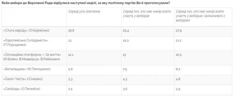 В Верховную раду сейчас прошли бы четыре (возможно – шесть) партий. У остальных отставание от планки в 5% больше чем максимальная статистическая погрешность опроса.