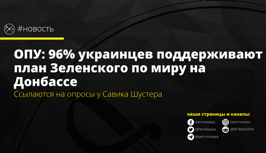 В Офисе президента заявили, что 96% украинцев поддерживают план президента по поводу мира на Донбассе. Основанием для такого заявления посчитали опрос в эфире «Свободы слова» Савика Шустера, после визита президента на ток-шоу.