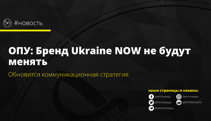 ОПУ: Бренд Ukraine NOW не будут менять