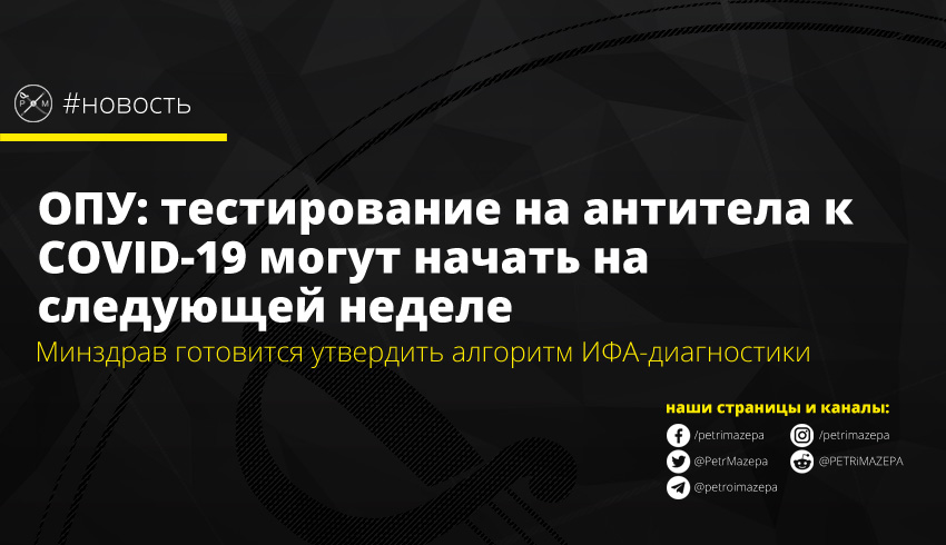 ОПУ: тестирование на антитела к COVID-19 могут начать на следующей неделе