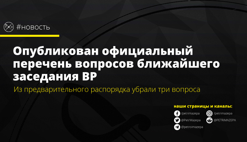 Опубликован официальный перечень вопросов ближайшего заседания ВР