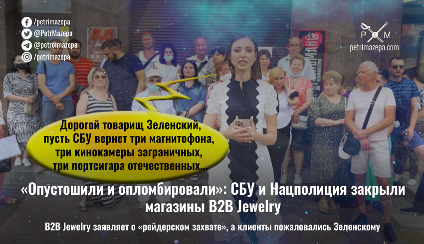 Как сообщается на Facebook-странице финансовой пирамиды B2B Jewelry, СБУ и Нацполиция вынесли все украшения. «Со стороны это больше похоже на рейдерский захват. Все наши магазины и производство опустошили и опломбировали. Руководство проекта обязательно прокомментирует ситуацию, как только мы дождемся официальной позиции от госорганов», - информирует B2B Jewelry. Там заявили, что клиенты написали петицию к президенту с требованием «сохранить проект». Пока что такого документа на сайте электронных петиций к президенту нет – есть только петиции с просьбой не выплачивать компенсации вкладчикам B2B Jewelry.