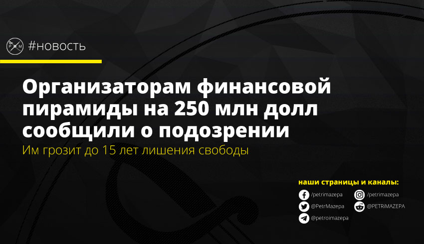 Организаторам финансовой пирамиды на 250 млн долл сообщили о подозрении
