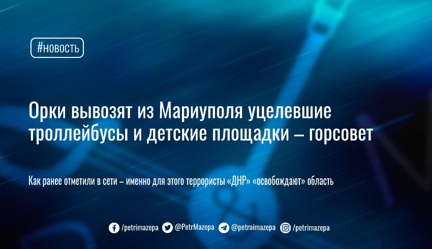 Свое сообщение они сопроводили скрином, который завирусился в сети вчера. На нем — скриншот сообщения из Telegram. На скрине говорится про 12 троллейбусов, детские площадки и медицинское оборудование, которые планируют вывезти в так называемое «ДНР». И про судно со сталью, которое из Мариуполя должно отправиться в россию.