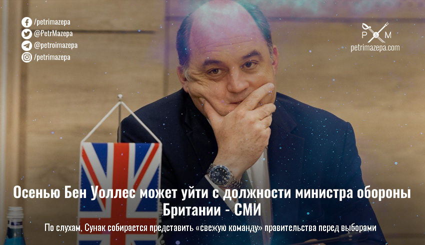 Издание The Times пишет, что министр обороны Великобритании Бен Уоллес рассматривает возможность покинуть свой пост осенью. Также осенью ожидают и перезапуска всего правительства Сунака. Причина — подготовка к выборам в Великобритании. Но Уоллес, хотя и является сторонником политики Сунака, планирует полностью уйти из политики.