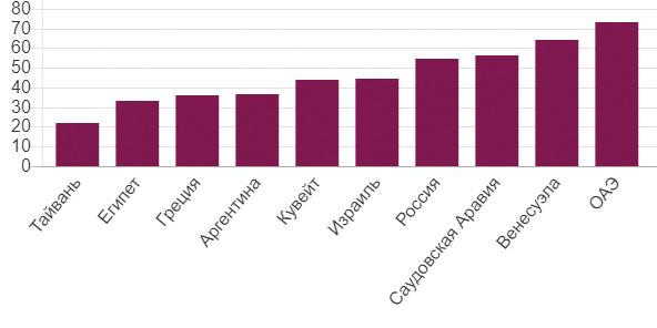 А вот так выглядит список стран, жители которых больше всего любят хранить деньги в офшорах. Правда, данные доступны только за 2007 год (в процентах по отношению к ВВП этих стран).