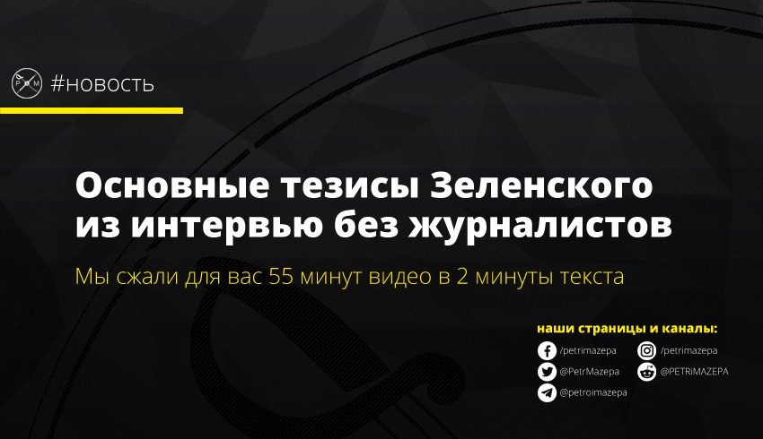 Вчера, как и ожидалось, на телеканале «1+1» вышло интервью президента Владимира Зеленского, посвященное 100 дням в должности президента. Интервьюировал президента актер из сериала «Слуга народа» Станислав Боклан. Президент рассказал о своем распорядке, отношению к Богдану в Сен-Тропе, кортежах и велосипеде, причине назначении на высокие должности друзей и партнеров. И многом другом. Представляем вам основные тезисы данного интервью и его полную видеоверсию.
